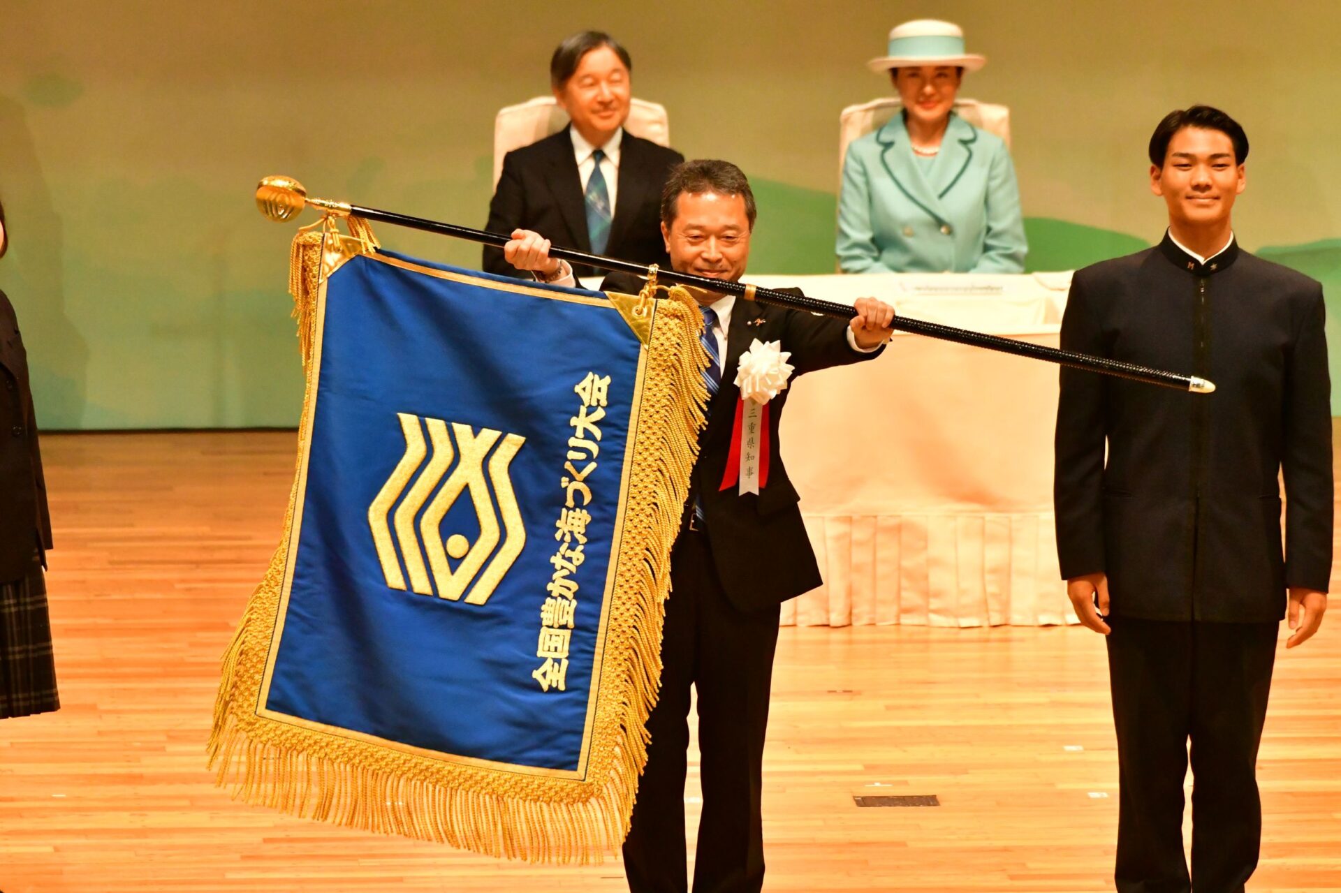 令和7年11月9日(日曜日)、天皇皇后両陛下の御臨席のもと「受け継ごう 命あふれる 清い海」をテーマに、~美(うま)し国みえ大会~が全国から水産関係者約1,200名をお招きして開催されました。