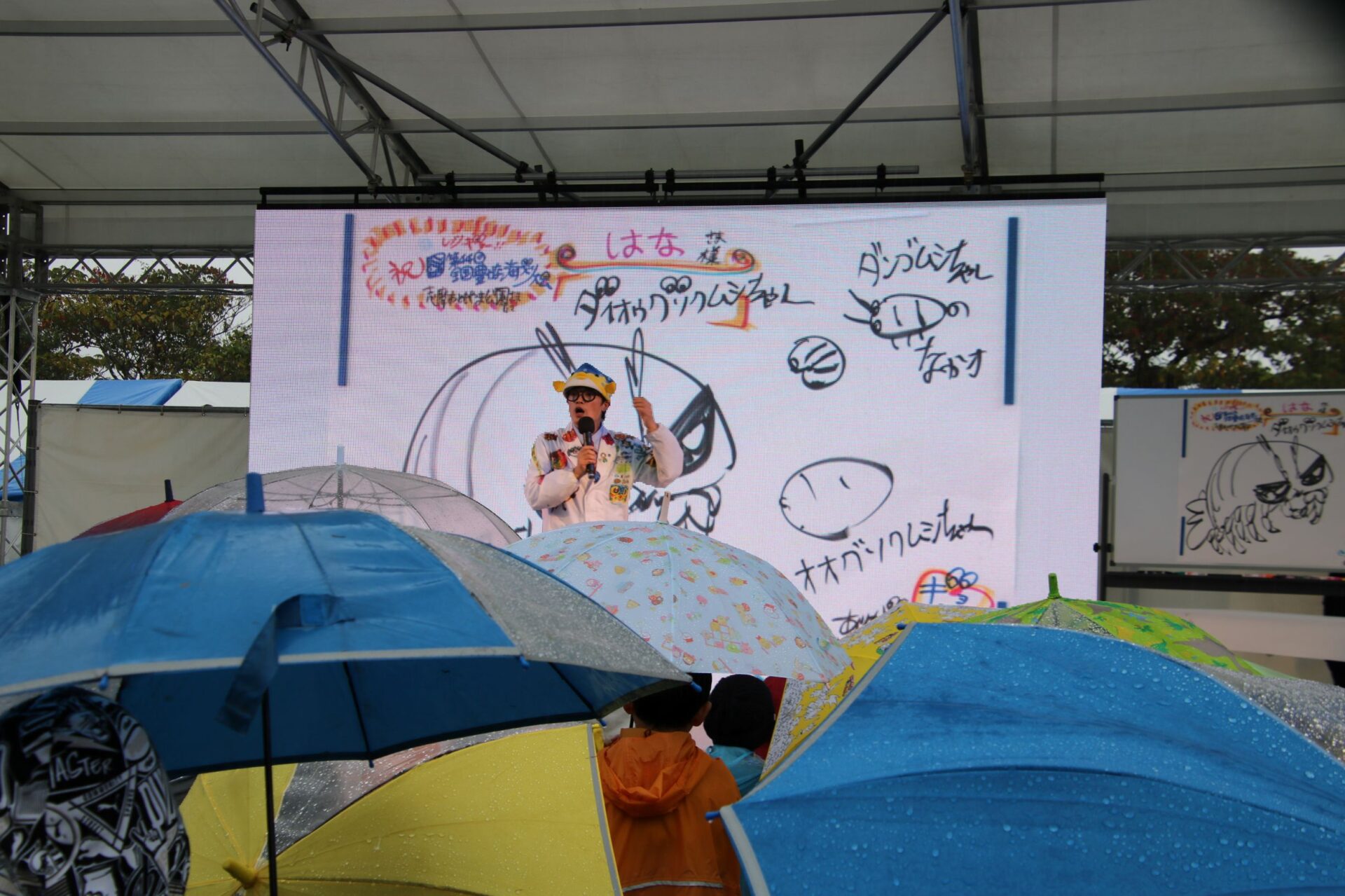 志摩市の志摩市阿児アリーナでは式典行事を、南伊勢町の宿田曽漁港では海上歓迎・放流行事が執り行われました。また、県内5ヵ所(桑名市桑名港、津市白塚漁港、志摩市ともやま公園、南伊勢町奈屋浦漁港、尾鷲市尾鷲魚市場)の関連行事会場には、大会の模様が映像で中継され、全体で13,000人以上と雨天にもかかわらず多くの皆様にご来場いただきました。